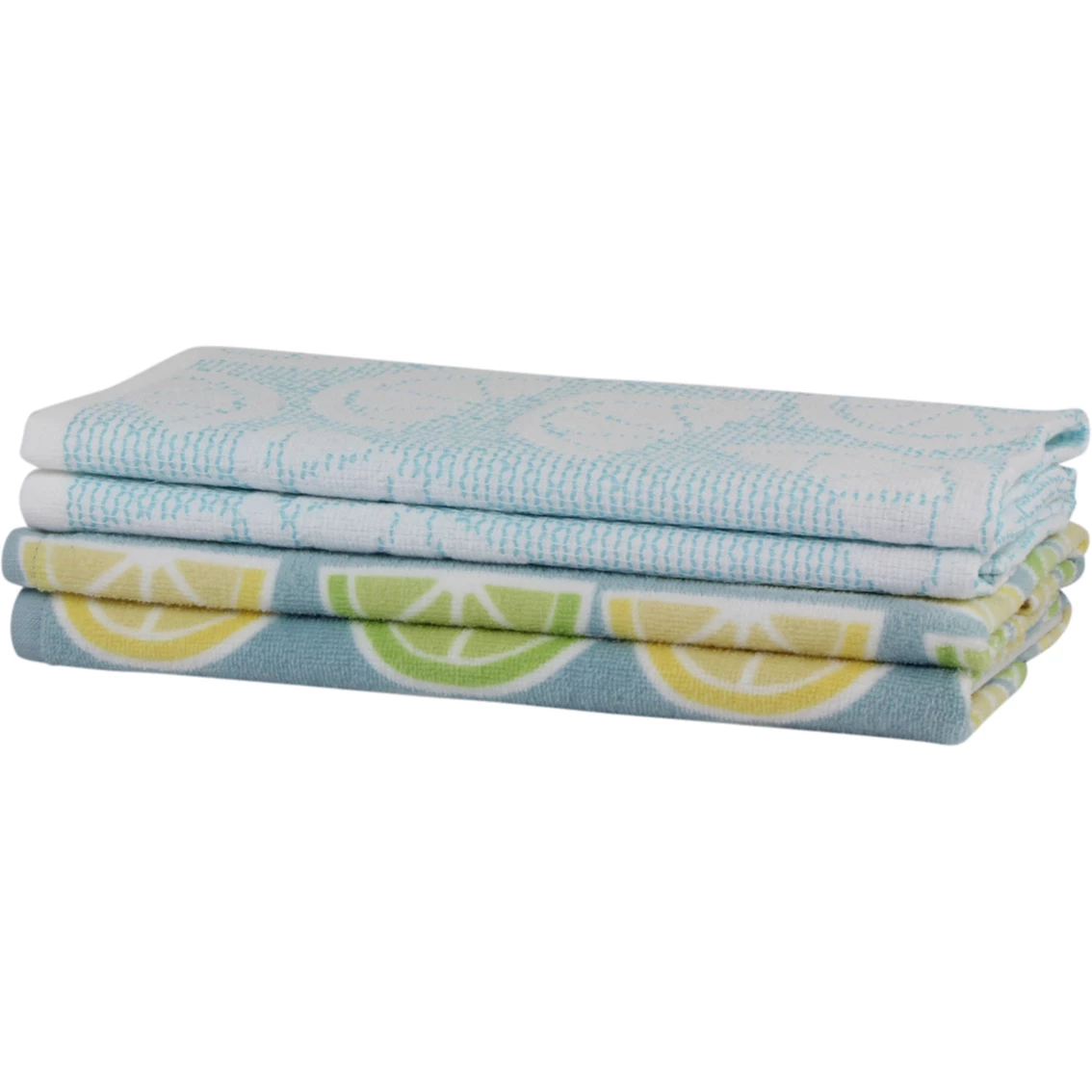 Are you tired of kitchen towels smelling bad after just one use? Do you want dishcloths always smelling clean? Would you love to do less laundry? Introducing Freshee from 1888 Mills. With Freshee, your linens have an invisible shield against funky smells and odors that lasts, use after use. No more smells means less work for you and more time to do the things you love. Each 16 in. x 28 in. towel is made of 100% cotton and features Intellifresh technology. The 4-pack includes 2 printed and 2 sculpted kitchen towels. Model: KIT-KT9313.