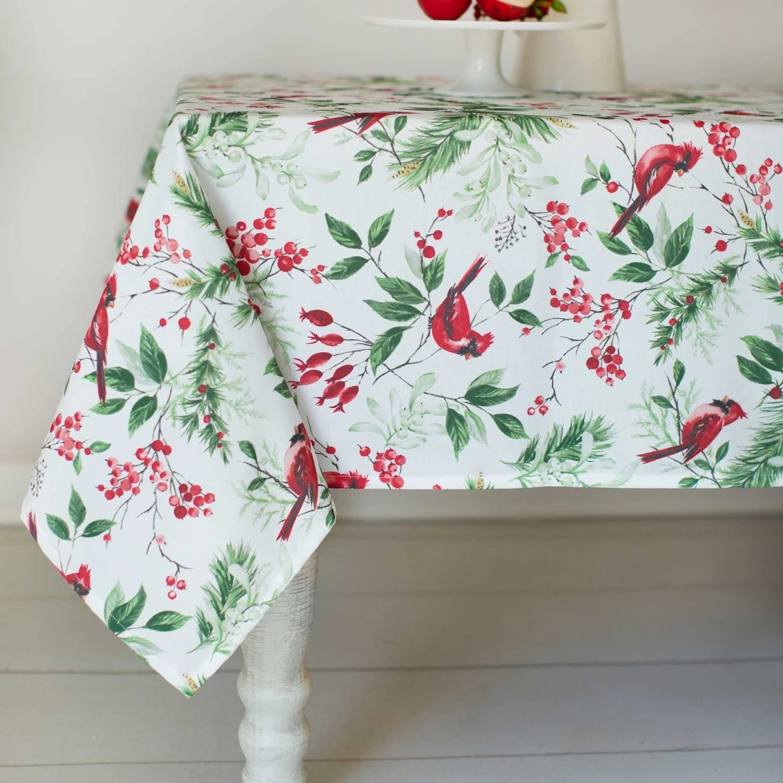 The Benson Mills holiday birds tablecloth will make your table lovely and festive, perfect for holiday dinning. It’s easy to care for and machine washable. Style: 33668.