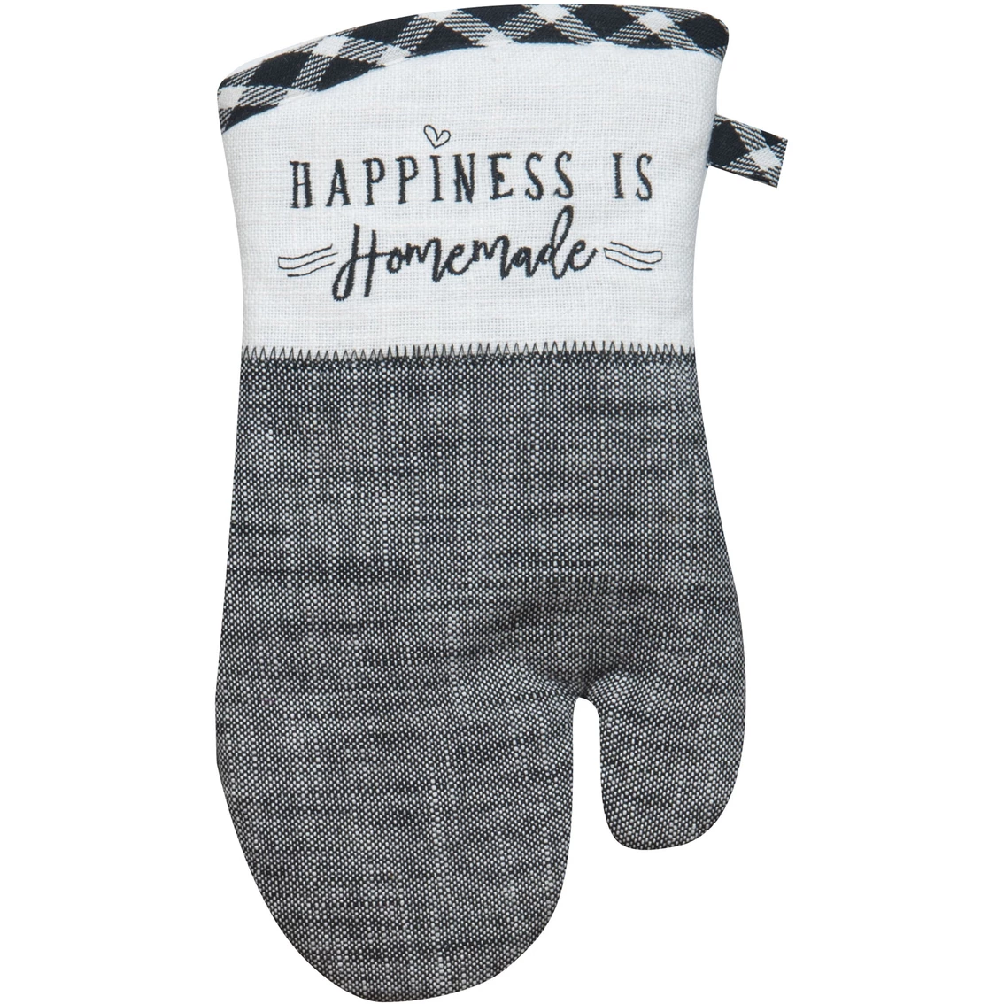 Black and white check is featured on this Kay Dee Designs Farmhouse Happiness Oven Mitt. With a sentimental home theme, this makes a perfect gift to give or to buy for yourself! This oven mitt is 100% cotton and is machine washable. Model: R4195.