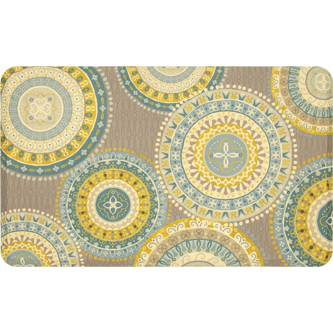 The Medallions Comfort Mat from Mohawk Home is a kitchen mat that will add both beauty and design to your kitchen. Feel the luxuriously soothing comfort for yourself. It features a premium plush cushion core and its advanced anti-fatigue technology offers welcomed relief from back, leg and foot discomfort. The mat is stain and skid resistant. Size: 18 in. x 30 in. Style: 4872-18593.